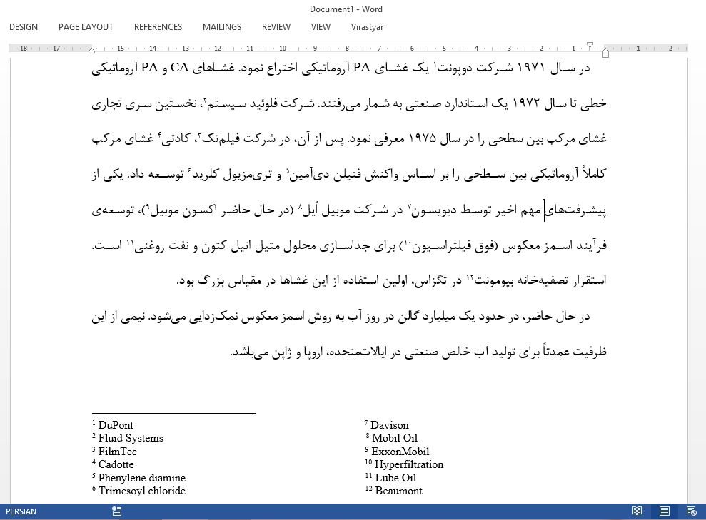 بطور مثال فرض کنید متنی مشابه متن زیر دارید که 12 پاورقی دارد و شما قصد دارید آنها را به دو ستون 6 تایی تقسیم کنید.